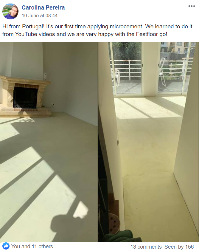 Carolina and her husband are real estate professionals in green Madeira. They search for houses and flats and renovate them, then sell them, mainly to foreign customers. They knew from the beginning that they wanted to use microcement for the floor and the bathroom. Although this material comes from the south of Europe, mainly from neighboring Spain and Italy, Carolina chose a Polish product. Searching the internet, she came across our site and our YouTube channel and she liked it so much that she did not hesitate to order 18 (!) Festfloor Go! kits + Festkontakt.  After a week she could start working.
