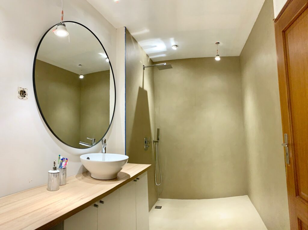 As she wrote on our Facebook group, she is not a professional microcement applier, she made microcement with her husband for the first time, and they learned the whole technique from video tutorials on our YouTube channel. The Portuguese couple reported on our group the progress of work, and finally – very proud – they boasted the final result. The photos we present below will be part of their company’s offer, and the holiday home itself will be soon on sale. It is worth about 250 thousand euro. Maybe someone is interested in buying?
