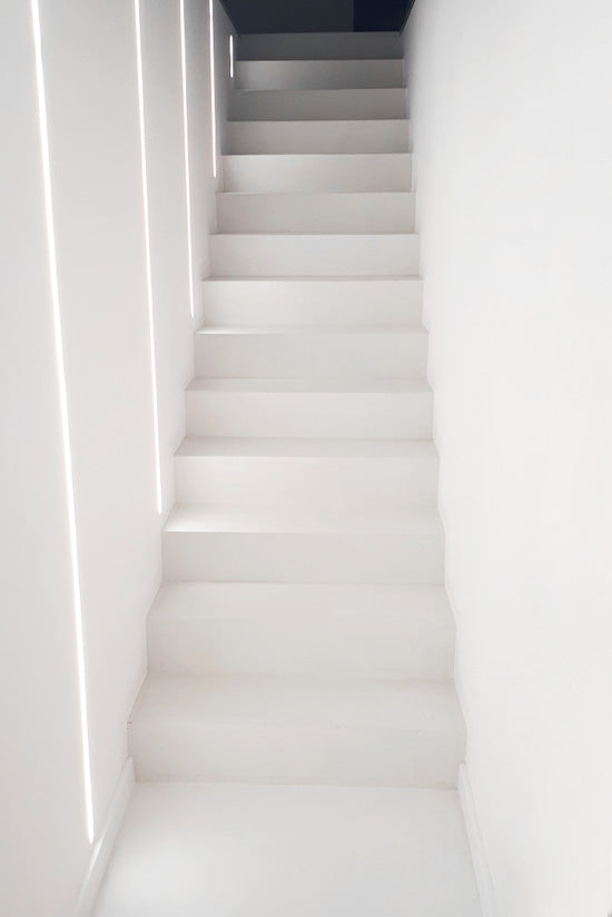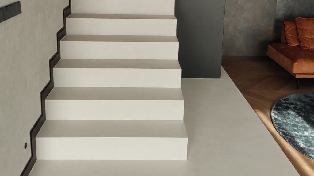 Many of our customers wonder how to renovate an old tiled staircase and whether it is possible to do so without removing the tiles. The answer to these questions is microcement. However, before you apply decorative concrete to your stairs, you need to prepare it properly. The right treatments before the microcement is applied will ensure that it adheres well to the substrate and that the joints won’t show through.