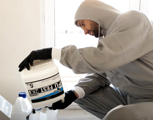 4. Application of microcement: FESTGrunt, first layer of microcement, sanding, vacuuming, second layer of microcement, sanding, vacuuming, primer under the sealer, sealer (2 coats) with 3K PLUS – increasing abrasion resistance.